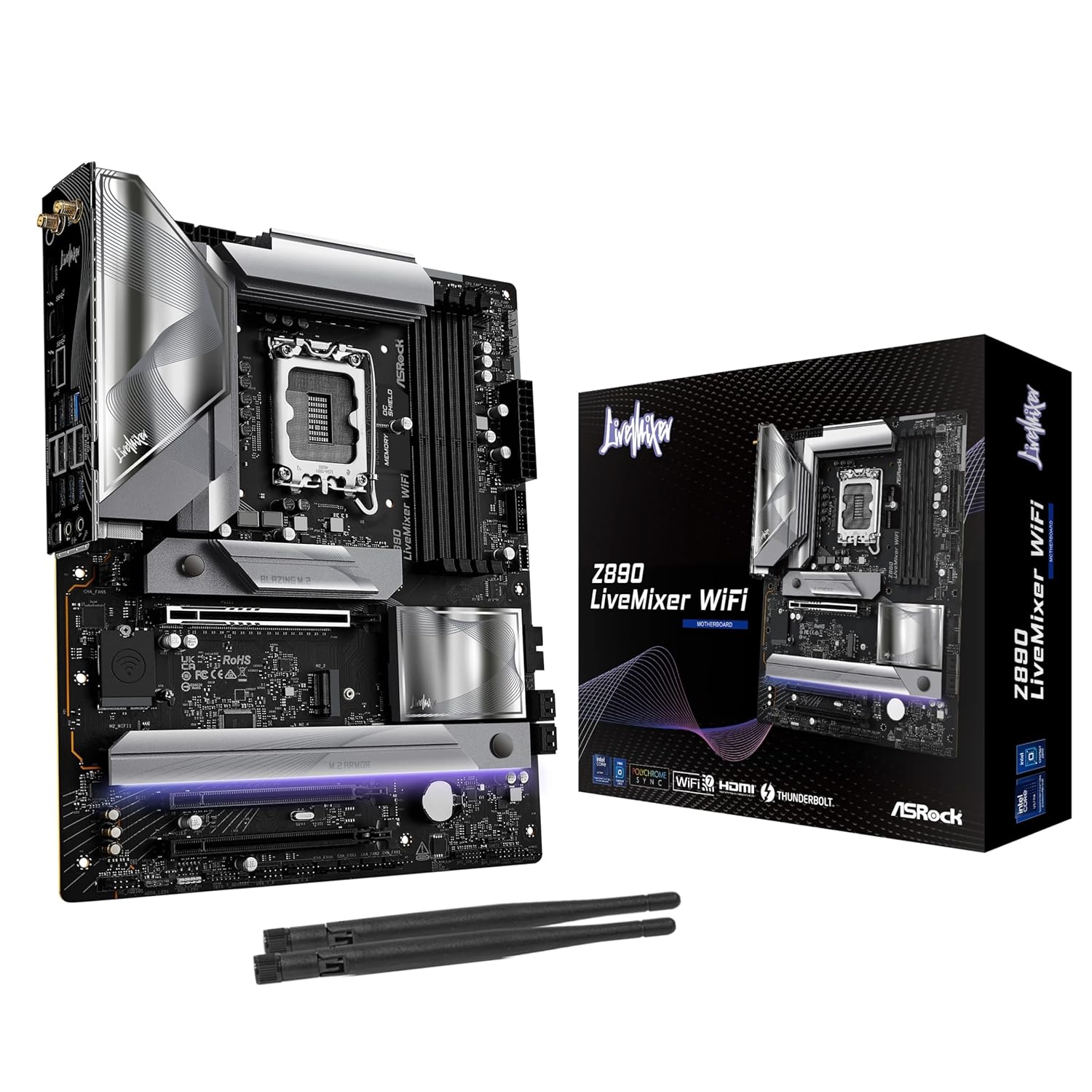 - 2 x ASRock WiFi 2.4/5/6 GHz Antennas